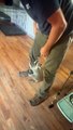 Ce chat n'a vraiment pas de pitié envers ce raton laveur. Regardez !