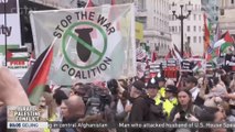 Anti-war protesters assembled on Trafalgar Square in London on Saturday, marching through the city to Parliament Square to mark the 10 year anniversary of the war in Afghanistan. Duration: 01:08