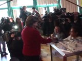 Martine Aubry a voté dimanche 9 octobre en fin de matinée au premier tour de la primaire socialiste dans une école de sa ville de Lille, où elle s'est dite "confiante et sereine", espérant que les électeurs "choisiront le vrai changement". Durée: 01:06