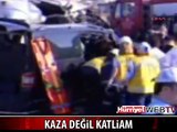 KAZA DEĞİL KATLİAM<br /><br />TEM Otoyolu Sultanbeyli Mevkii'nde meydana gelen trafik kazasında 9 kişi öldü 7 kişi yaralandı. İstanbul istikametine seyir halinde olan TIR bariyerleri parçalayıp yolun karşı şeridine geçti. Karşı şeritte Ankara istikametine seyir halinde olan 3 otomobile çarptı. Dehşet saçan TIR son olarak bir minibüsle kafa kafaya çarpıştı. Çarpışmayla birlikte minibüste can pazarı yaşanırken TIR yan devrildi. Minibüstekilerin bazıları içerde sıkışırken bazıları da otoyola savruldu. Olay yerine çok sayıda ambulans, itfaiye ve sağlık ekibi sevk edildi. Ramazan ALMAÇAYIR - Cengiz ÇOBAN - DHA