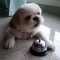 Ce bébé chien sonne pour avoir à manger.. pas bête !