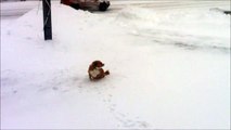 Dog roll in the snow and takes a shit