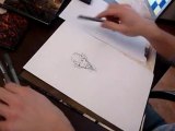 Jean Sole réalise un crobard de Superdupont à l'occasion de la présentation de son dernier album...