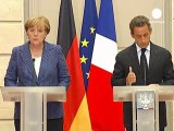 President Nicolas Sarkozy and Chancellor Angela Merkel say France and Germany want a new EU treaty by March with tougher budgetary rules to deal with the eurozone debt crisis. The two leaders made the announcement after crunch talks in Paris at the start of a crucial week for the euro, teetering on the brink because of its indebted member states, ahead of a key EU summit in Brussels on Thursday. Duration: 02:27
