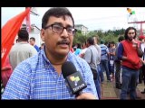 ROUGH CUT (NO REPORTER NARRATION)<br/> STORY: Thousands of angry villagers marched on Thursday (December 15) as part of continued protests over a land dispute in southern China.<br/> The protest is the latest display of simmering rural discontent that is eroding the ruling Communist Party's grip at the grassroots level.<br/> Hong Kong TV showed men, women and children marching through the streets of Wukan Village in Guangdong holding banners and chanting anti-corruption slogans, despite moves by the authorities to halt a land project at the center of the unrest and detain local officials involved.<br/> Days of protests have been sparked by last weekend's death in custody of Xue Jinbo, 42, who had been detained on suspicion of helping organize protests against land seizures.<br/> Villagers believe Xue was the victim of police brutality -- a charge the government denies, citing an autopsy that found he died of heart failure.