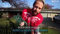 Stel versiert huis van ouders met kerstlichtjes als een geweldige verrassing