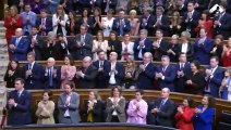 El rey Juan Carlos I presidió este martes en el Salón de Plenos del Congreso la Solemne Apertura de la X Legislatura, un acto en el que el nuevo Gobierno del PP, presidido por Mariano Rajoy, estrenó el 'banco azul' del hemiciclo. La cita reunió a diputados y senadores de todos los partidos con representación parlamentaria, salvo de ERC y Amaiur, que declinaron asistir.