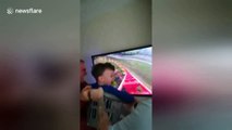 UK boy enjoys thrilling ride made from washing basket and big-screen TV