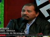 Nicaragua's president Daniel Ortega on Tuesday urged Israel to destroy its nuclear weapons to foster peace in the Middle East.<br/> He made his statements while hosting Iranian President Mahmoud Amhadinejad and Venezuelan leader Hugo Chavez.<br/> Speaking at a ceremony where he was sworn in for a second consecutive term in office, Ortega attacked the U.S. occupation of Iraq and Afghanistan, condemned the killing of Libyan leader Muammar Gaddafi, and offered a brief valediction to executed Iraqi premier Saddam Hussein.<br/> Ortega also defended Iran's stated intention to develop atomic energy - a move Western powers say is a cover for a nuclear weapons program.<br/> (SOUNDBITE) (Spanish) NICARAGUAN PRESIDENT DANIEL ORTEGA, SAYING:<br/> "Think about it! To those who have nuclear weapons, there is no one who calls upon them because they do so. On the contrary, to those who are developing nuclear energy for peaceful means, these are the ones who are blamed and threatened because they do so."<br/> Sixty-six-year-old Ortega suspended diplomatic ties with Israel in 2010 after Israeli commandos staged a deadly raid on a Gaza-bound flotilla.<br/> Meanwhile, Ahmadinejad is on a trip visiting leftist leaders in Latin America known for their antagonism to the United States.<br/> Ortega has shrugged off opposition complaints his re-election was illegal and vowed to govern with moderation.<br/> Travis Brecher, Reuters