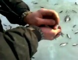 Ce poisson sort de ce trou dans la glace sans meme etre accroché au leurre... Dingue