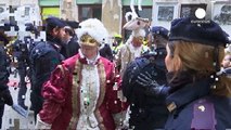 Carnaval bajo nieve. Pese a la ola polar que azota Europa en Venecia 25.000 personas no se intimidan y participan del afamado Carnaval de la ciudad.