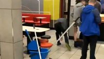 Side-splitting prank unfolds as man’s pants are yanked down while ordering food
