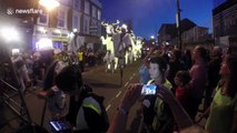 Brandon Mychal Smith delights fans at the Hollywood Xmas parade by stepping over to pose for pictures and sign autographs.