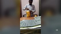 Man caught SPITTING into woman boss's drink