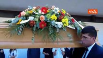 Il feretro di Emilio Fede lascia la Chiesa di Dio Padre a Milano 2