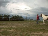 qd tu lui demandes de revenir vers toi au trot, ne secoues pas ta longe... tu lui demandes un arrêt en même temps