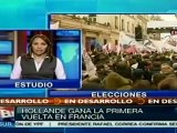 Con el escrutinio de 27.55 millones de votos en Francia, François Hollande obtiene un 27.69%; Nicolás Sarkozy un 26.66%, Marine Le Peen un 19.65% y Jean-Luc Mélenchon un 10.67%. Hollande y Sarkozy serán quienes disputen la presidencia en la segunda vuelta electoral. teleSUR