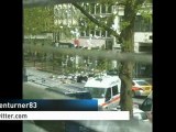 Amateur video and aerial shots catch a man believed to be armed with petrol and a blowtorch throwing items out of the office block he is holed up in.