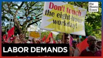 Tens of thousands of workers throughout Asia mark Labour Day with marches and protests.<br/> <br />Here in Manila, various labour groups took to the streets, calling for wage increases across the board and better treatment of women in the work place.<br/> <br />Union leaders say this is the first time so many groups have come together to demand the government implement laws that protect workers' rights.<br/> <br />Taiwanese labourers also marched to demand fairer conditions in the workplace, with nurses some of the loudest voices.<br/> <br />(SOUNDBITE) (Mandarin) 30-YEAR-OLD NURSE LI HUA-CHENG SAYING:<br/> <br />"We have been oppressed by the hospitals for a long time, and it has been hard especially when one person has to handle three people's jobs until we eventually develop health problems. This is very inhumane. Moreover, if we have health problems then we can't provide good care to the patients, and if something happens to the patients, we could<br/> <br />make mistakes because of fatigue."<br/> <br />Meanwhile in Bangladesh, home to sprawling factories producing cheap goods for the West, it was the garment workers at the forefront of May Day protests.<br/> <br />(SOUNDBITE) (Bengali) A LEADER OF GARMENT WORKERS, FIROZA BEGUM SAYING:<br/> <br />"We demand that workers should get a good salary to live with a standard of honour. Because these garment workers bring in foreign currency and they keep the wheel of Bangladesh's economy active, we demand that we must get a sufficient salary, comparing to the hike of price of essential goods, and for the government to start a rationing<br/> <br />system for us."<br/> <br />Their counterparts in Cambodia were also out in force in Phnom Penh to ask the government for more legislative support.<br/> <br />Labour Day is observed by millions of workers around the world.<br/> <br />Jessica Gray, Reuters