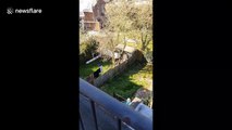 Builders work closely together on London building site despite social distancing rules