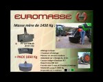EUROMASSE est un nouveau concept de masse en fonte pour tracteur agricole à la fois esthétique, peu encombrant, fiable et robuste grâce à son attelage à chape exclusif à EUROMASSE. Adaptable sur relevage avant et arrière, et sur porte masse. Suite à l'évolution des puissances, EUROMASSE propose 2 gammes : - MASSES MONOBLOCS Polyvalentes : 600 Kg - 850 Kg - 1400 Kg / - MASSES EVOLUTIVES : - Masse mère de 600 kg évolutives à 1000 kg et 1200 Kg / - Masse mère de 800 kg évolutives à 1200 kg et 1400 Kg/ - Masse mère de 1450 kg évolutives à 2850 kg (grâce à 3 modules). Avec le tracteur, le quotidien devient plus confortable avec la masse modulable en fonte, sans effort et sans descendre du tracteur de la part de l'utilisateur. Le soin apporté à l'esthétique, à la fabrication, à l'innovation et à la sécurité sont nos meilleurs gages de qualité et de fiabilité. EUROMASSE est lauréat aux trophées INNOVAGRI 2010,"Coup de cœur du Jury". RDV sur www.euromasse.com. Fabrication 100 % FRANCAISE.