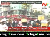 Travel bus catches fire at Ameerpet