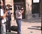 Medio centenar de personas se han concentrado frente a los juzgados de Bilbao en solidaridad con los dos estudiantes alemanes acusados de empujar y quemar un contenedor en el desalojo de Kukutza, a los que se juzgaban hoy por estos hechos.