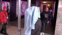 Rihanna poses nude on a billboard in Times Square to promote her latest fragrance as she steps out in a see-through top. The pop diva adamantly denies Jahnassa Aiken was used as a body double.