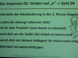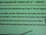 Wir lernen den Imperativ der starken Verben, die im Singular ihren Stammvokal "e" auf "i", "ie" ändern. Dann nimmt der Imperativ Singular in der 2. Person die Vokaländerung.<br />Dies gilt nicht für den Plural!<br />Sieh doch mal! (2. Person Singular)<br />Seht doch mal! (2. Person Plural)