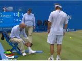 David Nalbandian was sensationally disqualified from the final of the AEGON Championship after lashing out at an advertising hoarding and injuring a line judge.