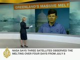 New satellite images have revealed almost all of Greenland's surface ice has suddenly started melting.