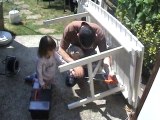 Presque 22 mois, premier gros bricolage : <br />une barrière de sécurité pour les enfants vite fait montée et ajustée,<br />et par Alexandre lui même ... lol ... avec la perceuse à papa !!!