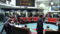 Barclays share price has plunged by 17 per cent after the UK bank was hit by record fines for distorting key interest rates. <br /><br />The rates concerned play a major role in international financial markets and affect how businesses and consumers borrow money. <br /><br />Barclays agreed to pay $453m for using underhand tactics, including price-fixing, to rig the markets.<br /><br />Other British banks also slumped on reports that the scandal was set to engulf HSBC, Lloyds Banking Group and Royal Bank of Scotland.<br /><br />Laurence Lee reports from London.
