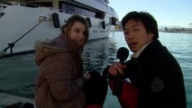 Deux mecs chopent les jolies filles sur la plage avec leur hélicoptère