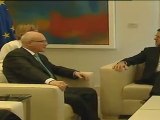 Madrid, 6 de septiembre (CERESTV.es / EFE)<br /><br />El presidente del Gobierno, Mariano Rajoy, ha recibido hoy pasadas las 13.00 horas a la canciller alemana, Angela Merkel, en el Palacio de la Moncloa para recabar su respaldo al proceso de reformas, mientras el Banco Central Europeo decide en Fráncfort su programa de compra de deuda para aliviar los mercados.<br /><br />Sonrientes, Rajoy y Merkel han posado para las cámaras en las escalinatas del palacio antes de comenzar su reunión y de compartir un almuerzo de trabajo.<br /><br />Lee la noticia complera en CeresTV: http://bit.ly/P1nW0f<br /><br />© 2012 CERES TELEVISIÓN DIGITAL<br />[+info]: http://www.cerestv.es<br />[e-mail]: noticias@cerestv.es<br />Contacto: Teléf. 91 188 07 93
