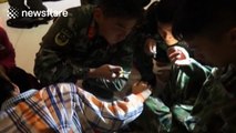 Firefighters come to the rescue of a small boy who got his head stuck while playing in a building in southwest China's Chongqing municipality. Report by Gillettr. Like us on Facebook at http://www.facebook.com/itn and follow us on Twitter at http://twitter.com/itn