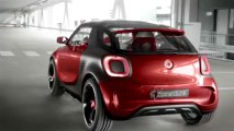 Star du stand Smart au Mondial de Paris, le concept Smart Forstars présente le style qui sera développé demain par la marque. Cela nous vaut ce modèle coupé sport utilitaire qui semble sorti en droite ligne d'un cartoons. Notons que parallèlement à cela, le concept Smart Forstars s'équipe d'un moteur à aimant permanent qui procure 81 ch et un couple de 135 Nm et d'une batterie lithium-ion de 17,6 kWh. <br /><br />www.ActuAuto.TV