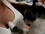 Haylaz kedi elbiseyi kaptı kaçtı
