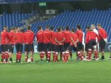 R. Girard et Y. Belhanda avant Olympiakos / Montpellier
