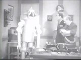 Throughout this serial, Professor Carl Van Dorn has at times revealed a aggressive and warlike inclination in his personality, much to Stanley Stanfield's surprise and disappointment. In this chapter, after receiving a gunshot wound, Van Dorn loses his mind and sends his unstoppable robot on a murderous rampage, destroying anything and anyone--friend or foe--in its path! (1934 - Universal Pictures)