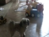 <p>my puppy channel is playing with a plasic botttle</p>