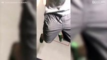 Mentre salta sul trampolino, il cellulare lo colpisce nelle zone basse...