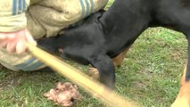 2 femelles dobermann de travail : magmar von der burgstatte à droite et lexa von der burgstatte à gauche