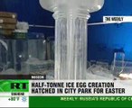 A team of sculptors in Moscow have made their own contribution to the Easter celebrations and produced a giant egg made out of ice in one of the city's parks.