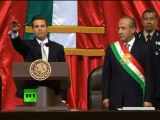Mexico's new President Enrique Pena Nieto pledged on Saturday to reduce the poverty and violence plaguing his country after a rowdy swearing-in ceremony marked by protests inside and outside Congress. Duration: 01:25
