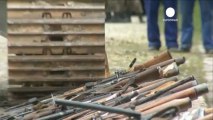 (ROUGH CUT ONLY - NO REPORTER NARRATION)<br/> <br />Colombian troops melted a massive collection of some 40,800 illegal weapons on Tuesday (December 4), one of the biggest weapon melts to take place in the South American country for years.<br/> <br />The majority of the weapons, which included grenade launchers, machine guns and revolvers, were confiscated during the first half of 2012 from the FARC, ELN and paramilitary groups.<br/> <br />Officials said the large-scale destruction sent a blow to criminal organisations by depleting weapon stocks in the country, and highlighted the government's efforts to crack down on illegal activity in a nation that has been plagued by violence for decades.<br/> <br />Due to the large volume, it is estimated that it will take about four days to melt all of the weapons in a plant in Sogamoso, a city in the Boyaca department about 220 kilometres (137 miles) from Bogota.<br/> <br />The steel and iron obtained from the melt will then be used in Colombian infrastructure, ranging from hospital foundations to school columns, according to organisers of the melt.