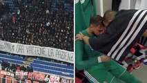 Gianluigi Donnarumma consolé par Leonardo Bonucci après la banderole des supporters milanais