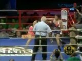 Combat de boxe féminin chez les poids super mouches (super flyweight) entre Daniela Romina Bermudez et Anahi Yolanda Salles tenu Club Sportivo America, Rosario, Santa Fe, Argentine le 22 décembre 2012.