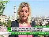 **EDIT CONTAINS GRAPHIC MATERIAL**<br/> <br />REUTERS IS UNABLE TO INDEPENDENTLY VERIFY THE CONTENT OF THIS VIDEO WHICH HAS BEEN OBTAINED FROM A SOCIAL MEDIA WEBSITE<br/> <br />Heavy fighting hits a ring road on the outskirts of central Damascus, as Syrian government forces try to halt a rebel advance.<br/> <br />This amateur footage, which cannot be independently verified, is said to show a checkpoint in Jobar on Thursday (February 7).<br/> <br />Opposition fighters say government warplanes bombarded the area.<br/> <br />For more than 36 hours rebels have overrun army positions encircling the heart of the city.<br/> <br />This footage shows the fighters moving into Jobar on Wednesday (February 6).<br/> <br />While opposition fighters have seen gains across parts of the country, they've so far been kept away from the centre of Damascus.<br/> <br />Here, footage is said to show rebels capturing an area in Jobar - at the expense of government troops.<br/> <br />Activists say at least 46 people were killed around the capital on Thursday.<br/> <br />Syrian state media says rebels have since been pushed back from Jobar and other eastern districts.