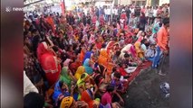Woman falls into red hot coals during Indian festival